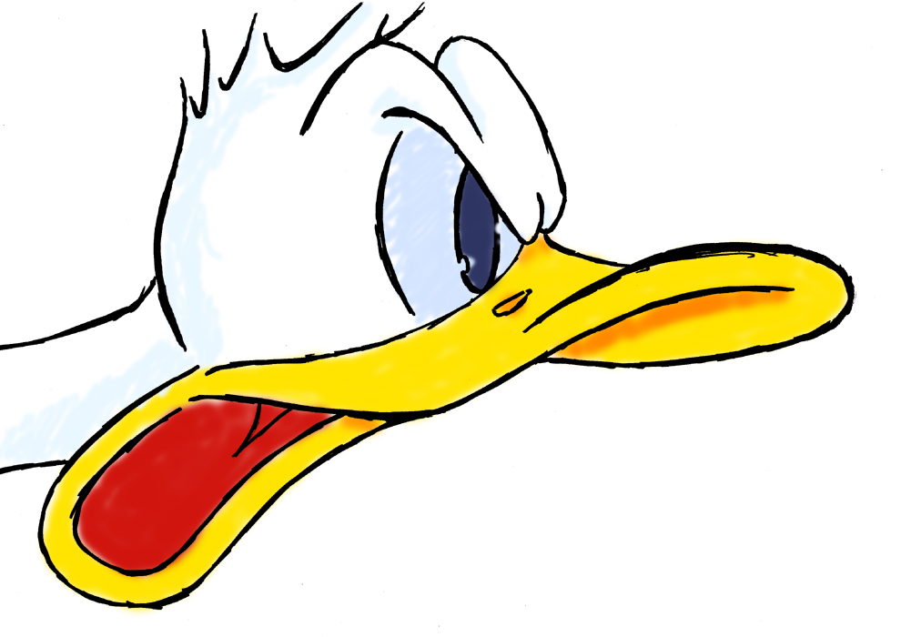 voilĂ un donald colo vite faite, il a pas l'air content.il a un lueur dans les yeux... on dirait qu'il va se transformer en ssj3!!!!