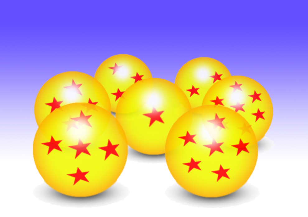 Dans le tuto, la boule est grise, alors, j'ai changé les couleurs et rajouté une étoile, puis enregistré, puis deux, etc... Ensuite je les ai toutes regroupées(il m'a fallut le radard de Bulma!) et ça a donné ça!